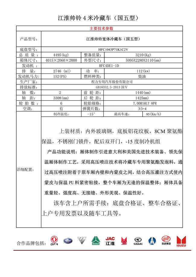 江淮帥鈴4米寬體冷藏車