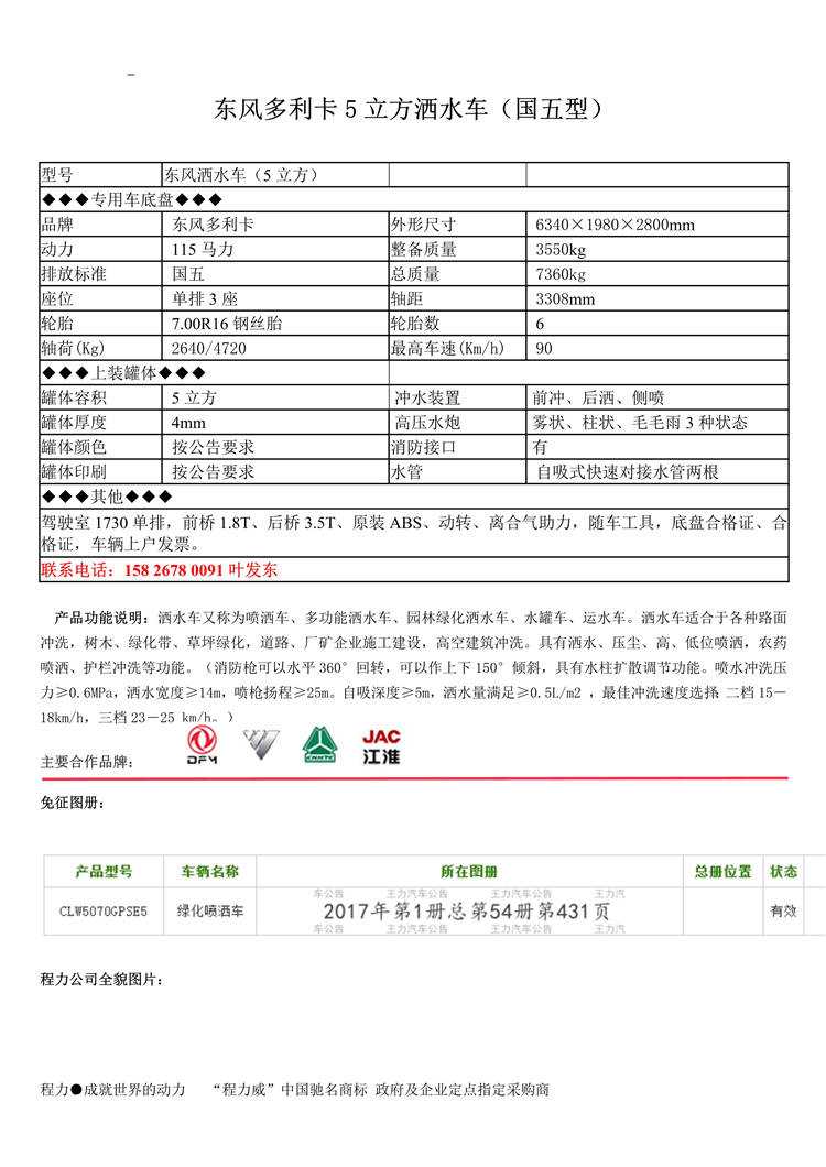 東風多利卡5噸全柴灑水車